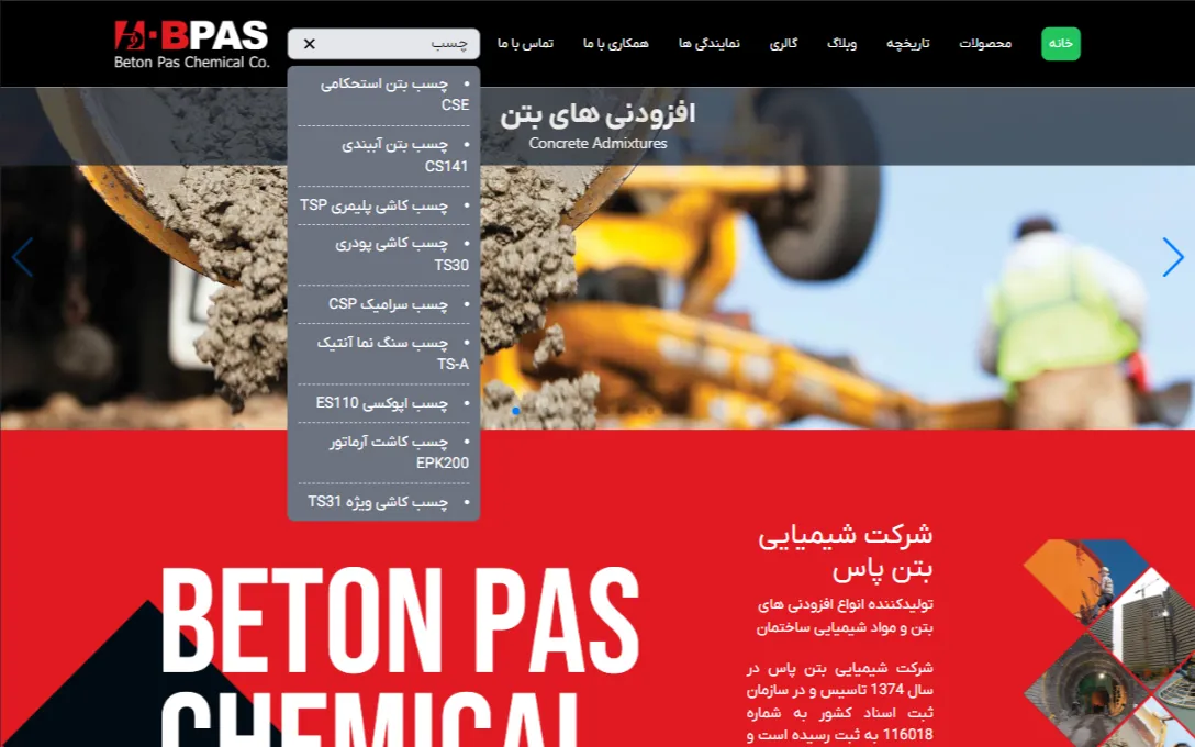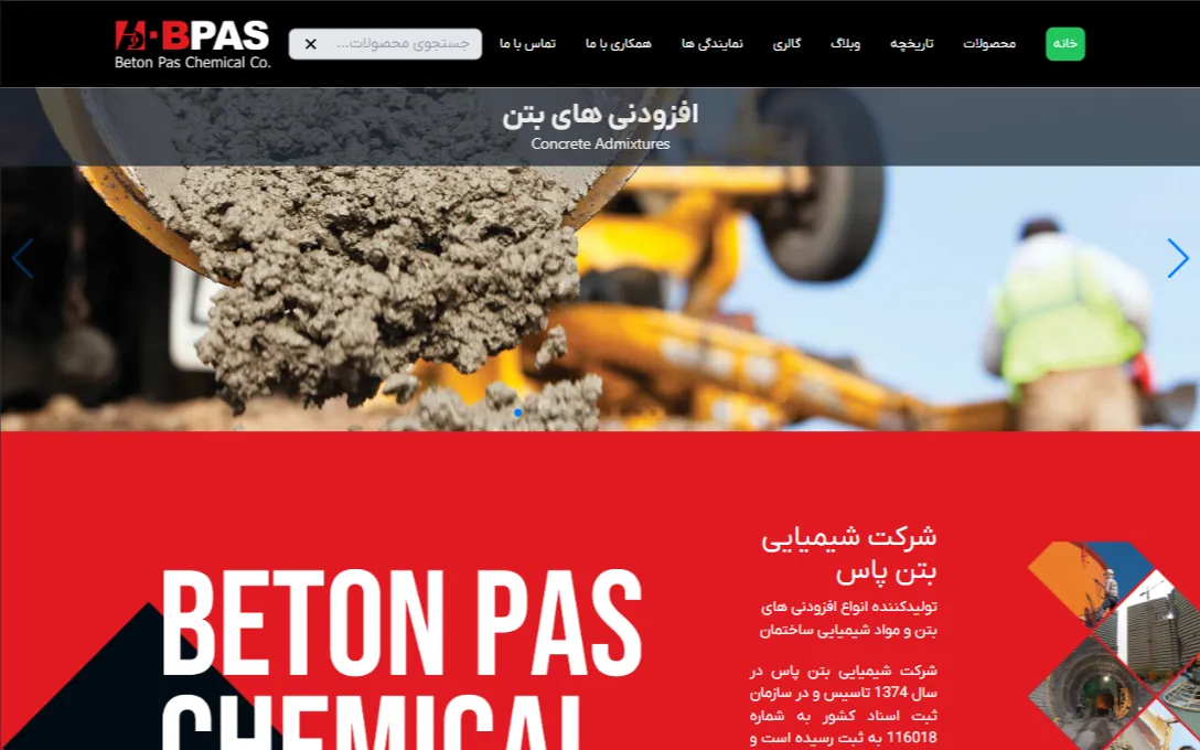 طراحی سایت شرکت تولید کننده مواد شیمیایی و بتنی بتن پاس